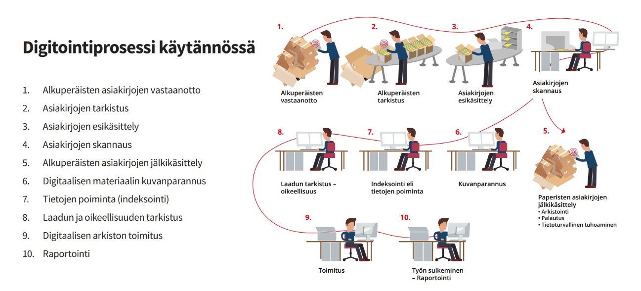 Digitointi mahdollistaa paremman hallinnan, kun pääsy dokumentteihin on rajattua ja seurattavaa. Lisäksi paperiarkiston riskit kuten katoaminen, luvaton käyttö poistuvat lähes kokonaan.